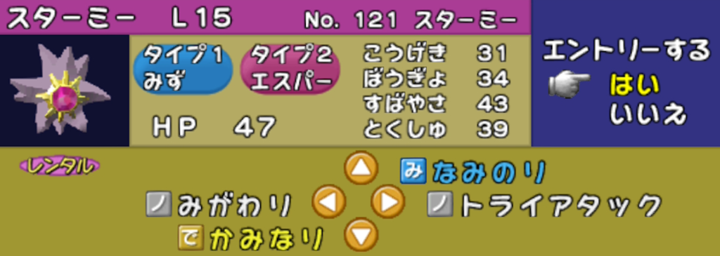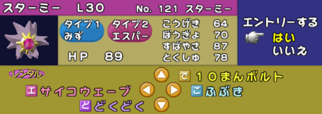 結論:レベルが上の相手を一撃で倒せるのは気持ち良いが、スターミーで普通に殴った方が速いし強いと感じました。