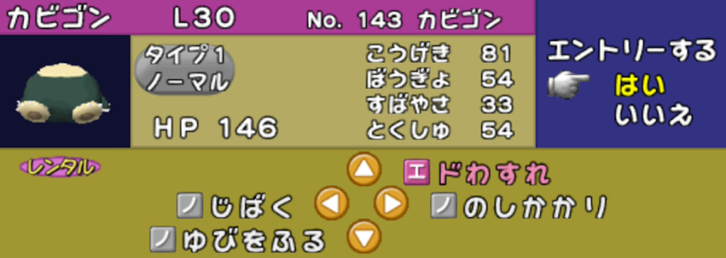素早さが低く、多くのポケモンに上を取られているので、のしかかり で麻痺を引かないと始まらないのがやや辛いです。