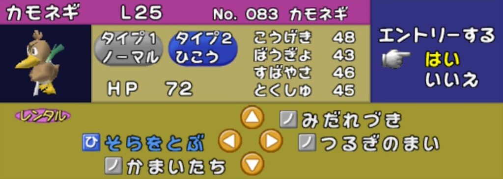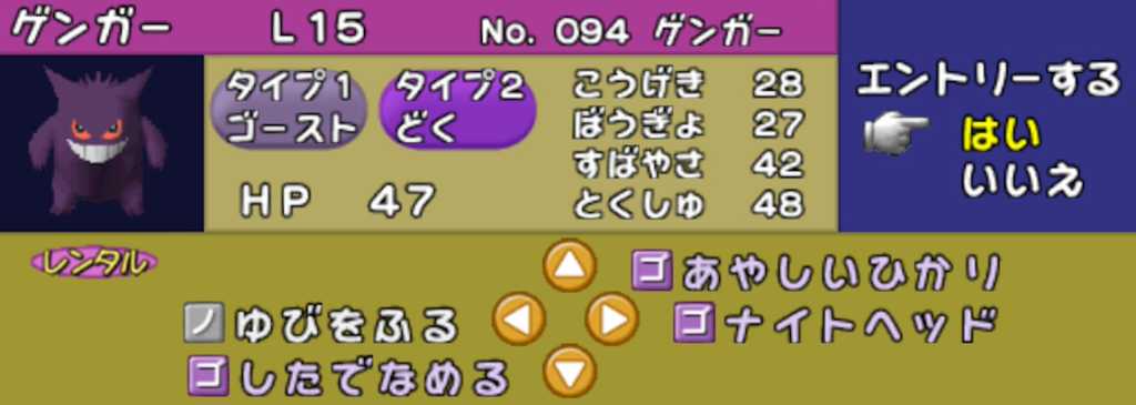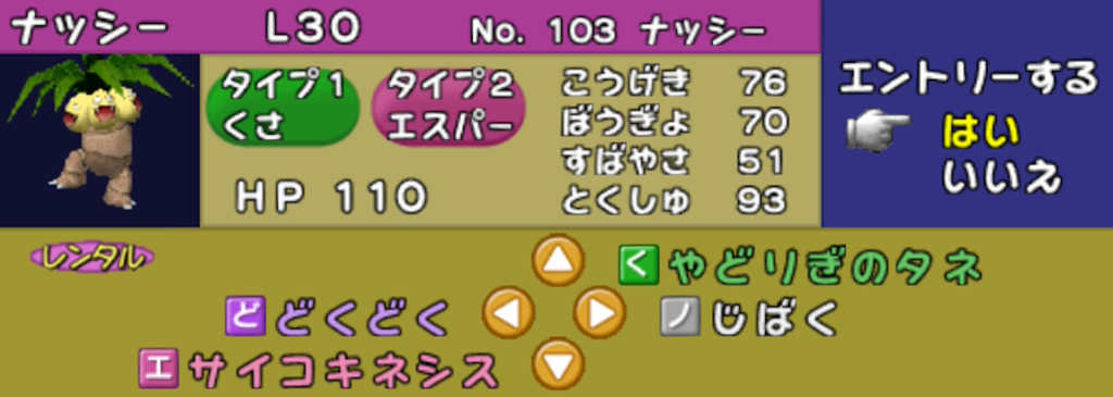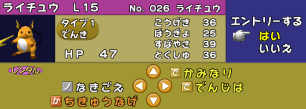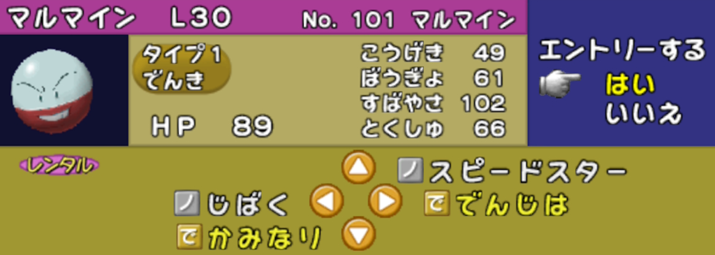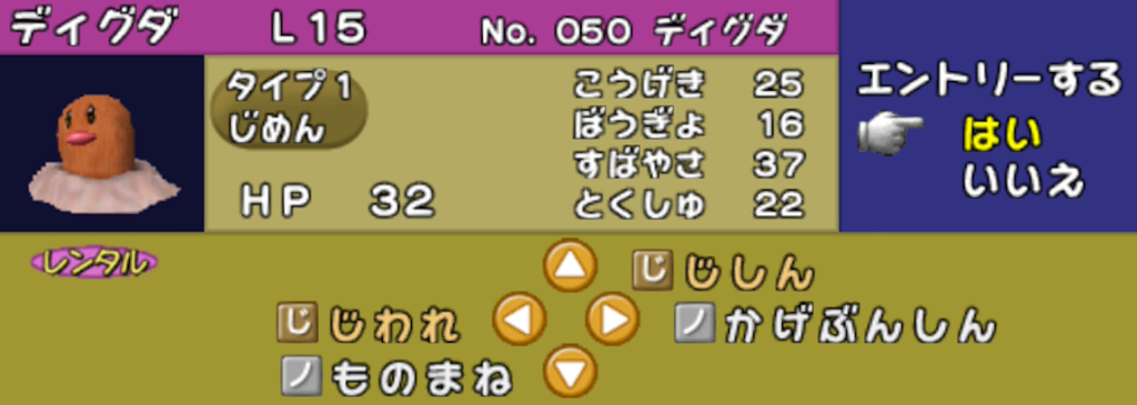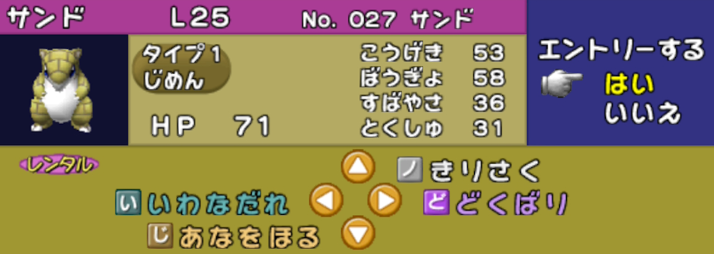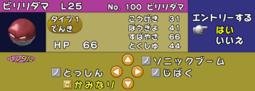 ポケモンスタジアム2では「自身の素早さ上昇 (高速移動)」 と「一撃必殺技」を両立するレンタルポケモンはポニータ以外にいません。
