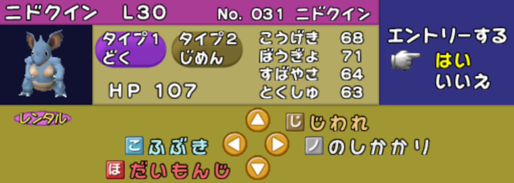 相手がガチパであり、エスパータイプ・ケンタロス・吹雪 が大正義の初代ではニドクインはかなり動きにくいです。先発では何もできない場面も多いです。