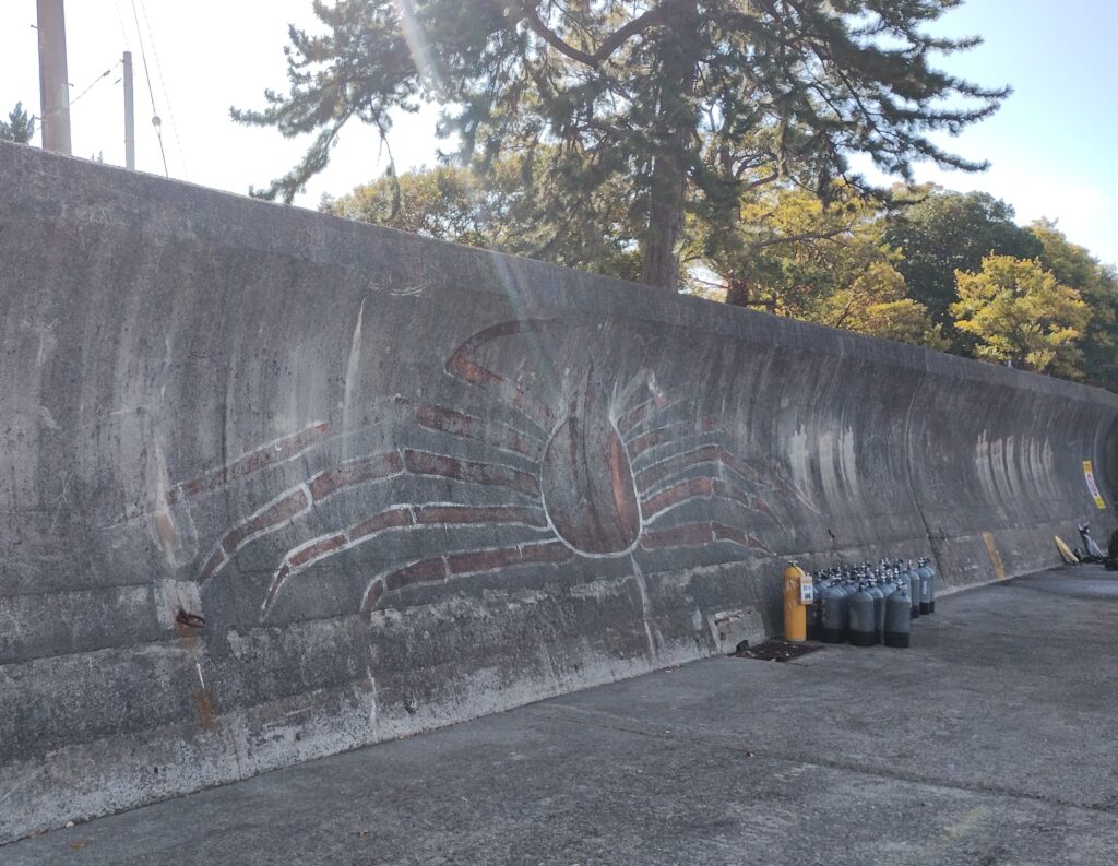 撮影場所を推定。堤防に描かれたカニをストリートビューで見ることができないので★★。