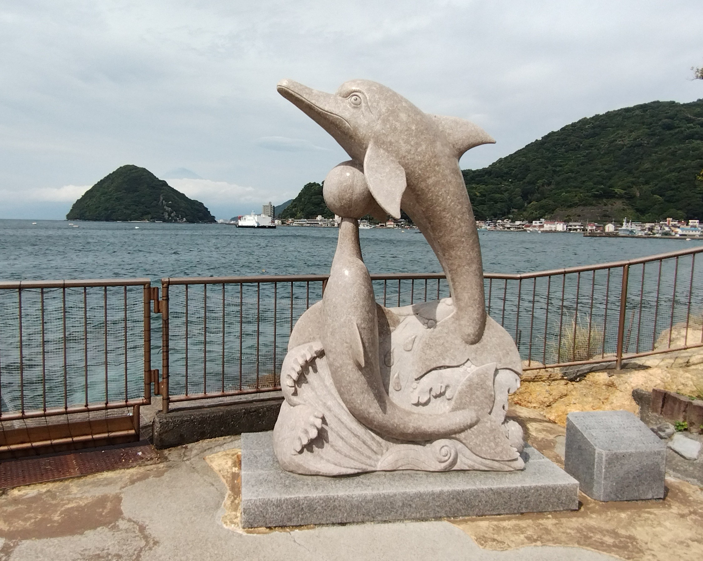 園内からは美しい淡島を眺めることができます。天気の良い日には富士山の姿も望めるかもしれません。