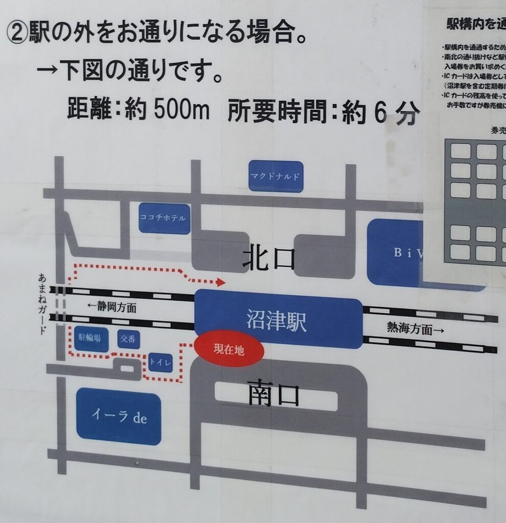 【沼津駅】北口・南口を行き来する方法まとめ|無料だが徒歩6分 or 150円で改札内通過