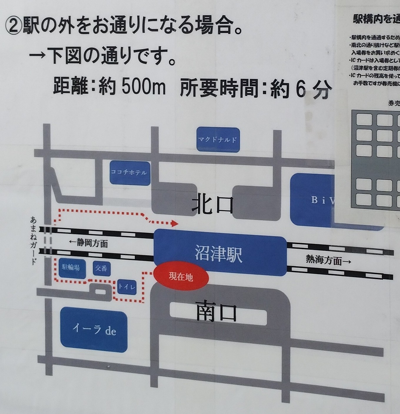 沼津駅南口改札前にルートの案内があります。