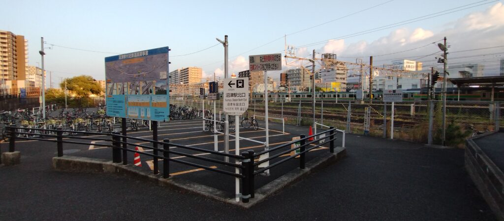 沼津駅は線路が東西に走っており、北口と南口が線路を挟んで反対側に位置しています。