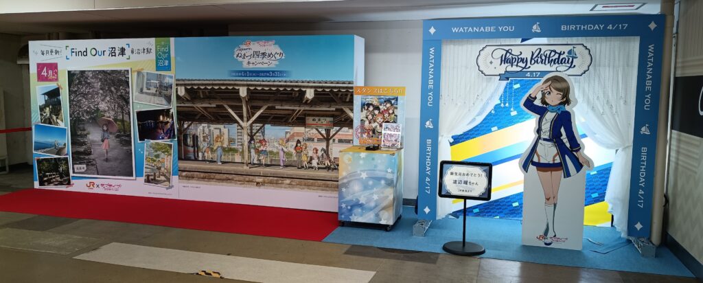 せっかく駅構内を通るなら、ラブライブ!サンシャイン!!の街歩きスタンプを押したり、ポスターを眺めたりするのもおすすめです。沼津はラブライブ!の聖地として知られており、駅内でも関連グッズやパネルが楽しめます。