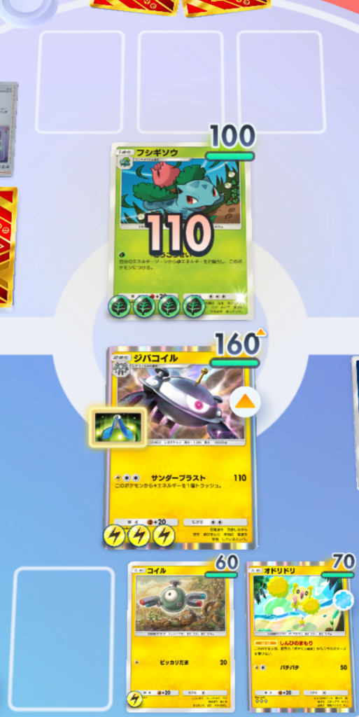 対メガフシギバナex: ジバコイルを素早く育成し、速攻で勝利👇