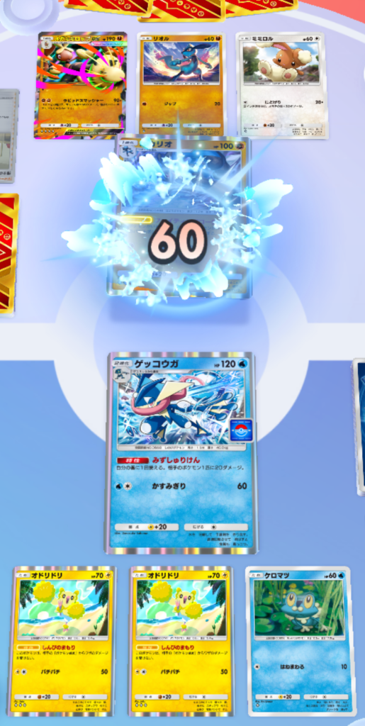 - オドリドリもゲッコウガも、特性だけで活躍できる点も大きな利点。雷と水の両エネルギーを採用しても動きが止まりにくく、扱いやすいデッキ構成です。
