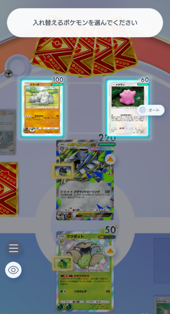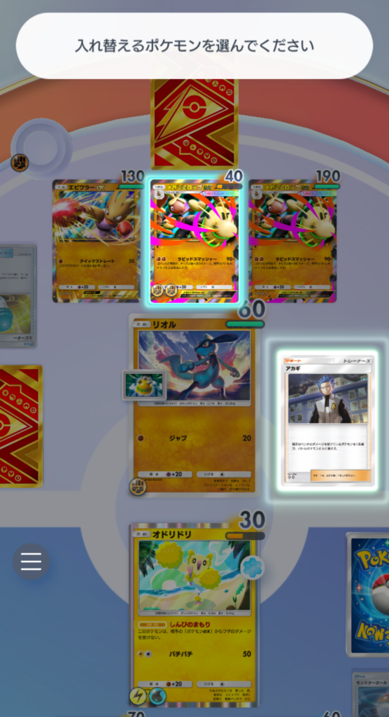 - アカギで相手ベンチのメガシンカポケモンexを呼び出し、そのまま倒して勝利するルートも取れます。