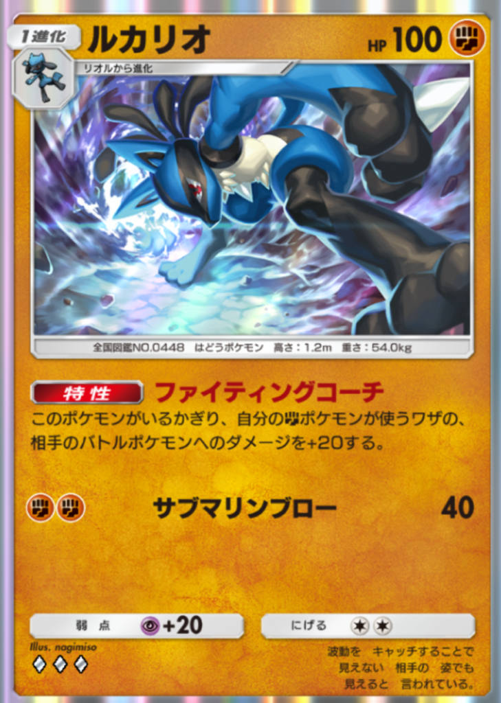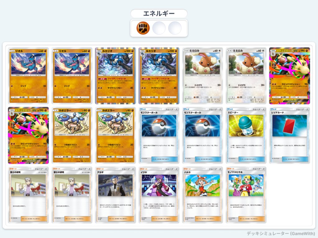 - ルカリオの特性によってメガミミロップexのワザダメージを底上げでき、より高い打点を狙える構成です。