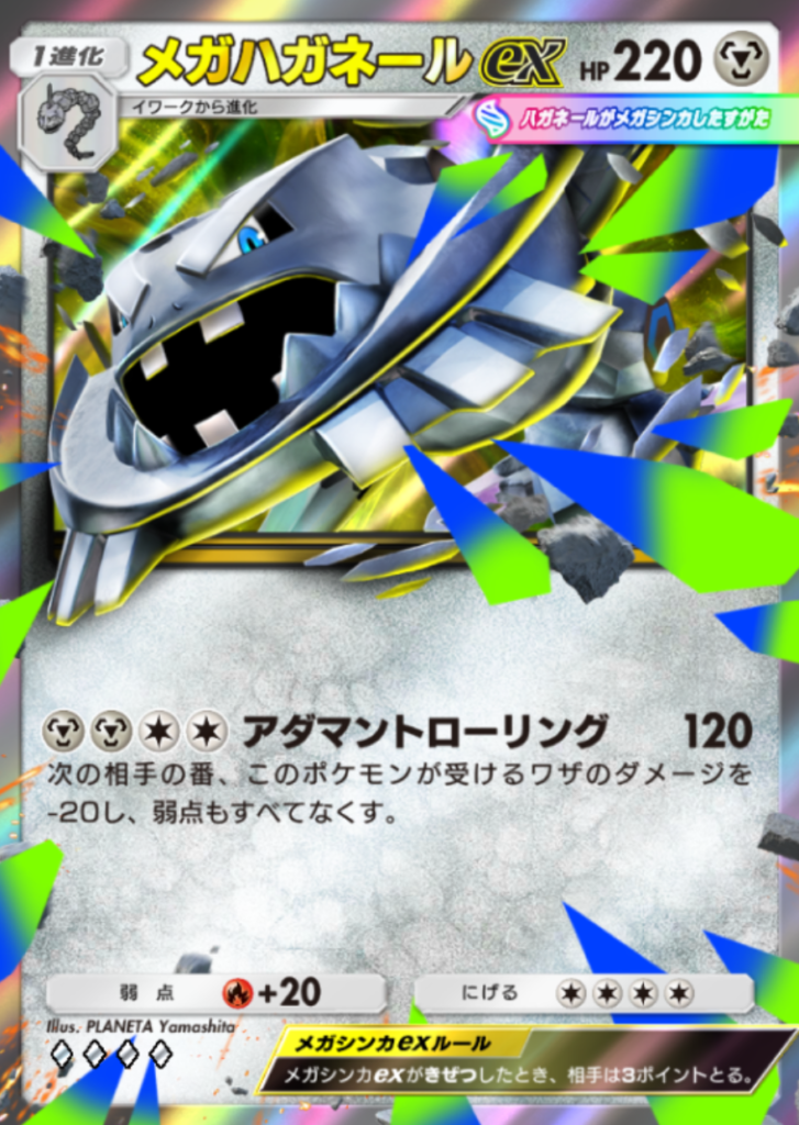- ワザの効果とヘビーメットを組み合わせることで、メガリザードンY exの250ダメージにも耐えられるメガハガネールexを採用した耐久型デッキです。