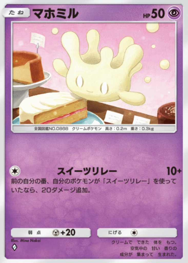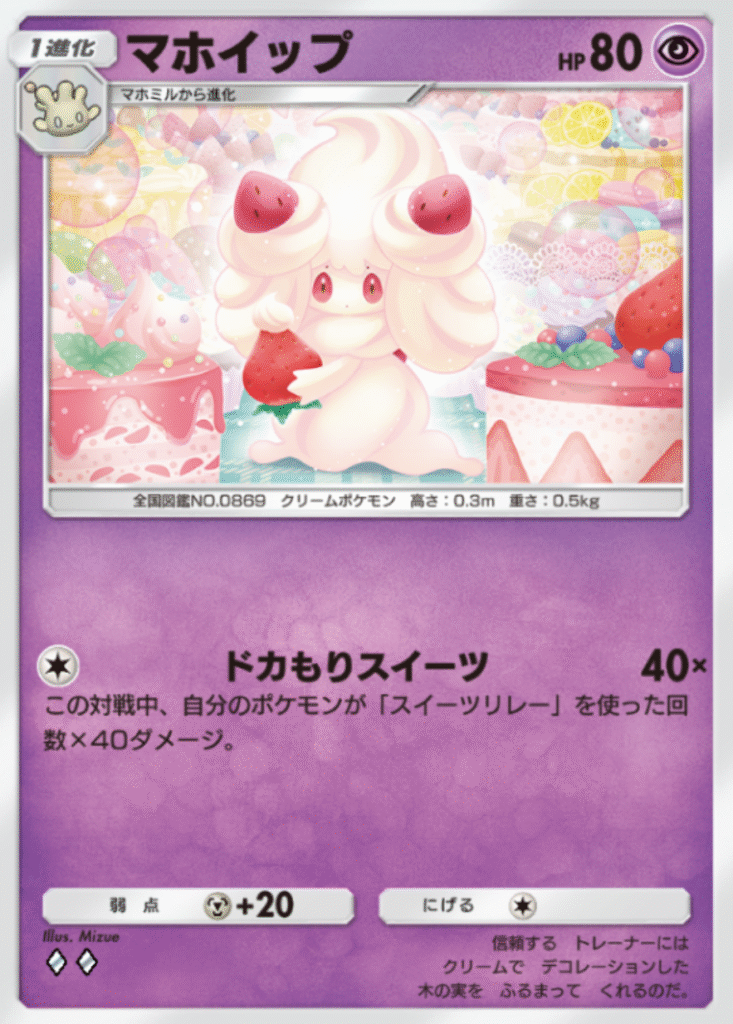特に、マホイップに進化できるマホミルも「スイーツリレー」を使えるため、進化前からコンボに貢献できるのが強みです。