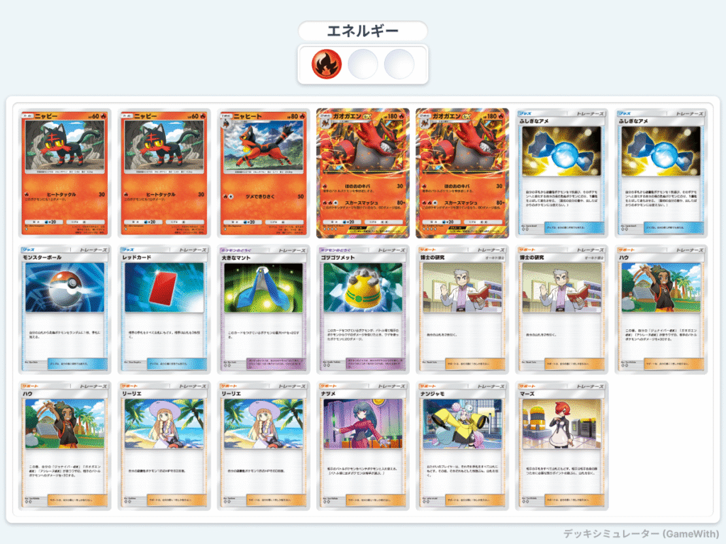 - ガオガエンexの進化ラインのみを中心に構築されたシンプルなデッキです。