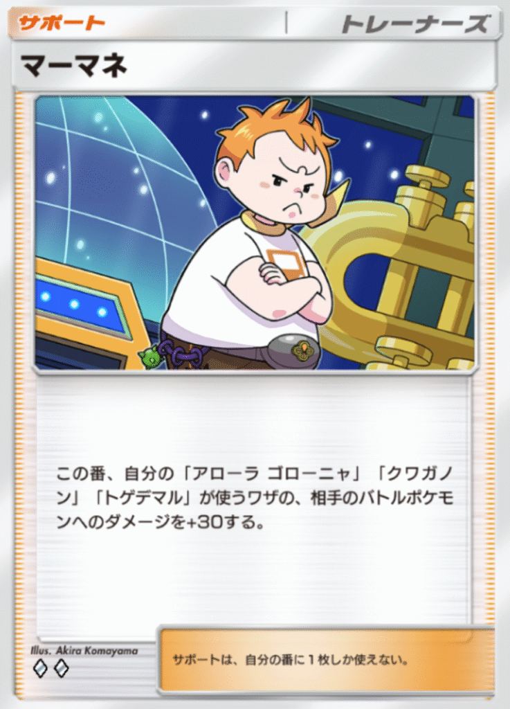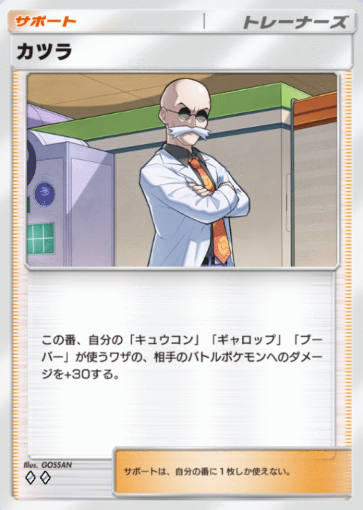 一方で、相手に依存せずにワザダメージをアップできるカードにはカツラ、マーマネ、シロナもありますが、これら非exポケモンが対象です。