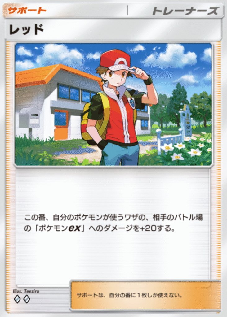 そのため、相手がポケモンexを場に出していない場合や、デッキに採用していない場合は、レッドの恩恵を受けられません。