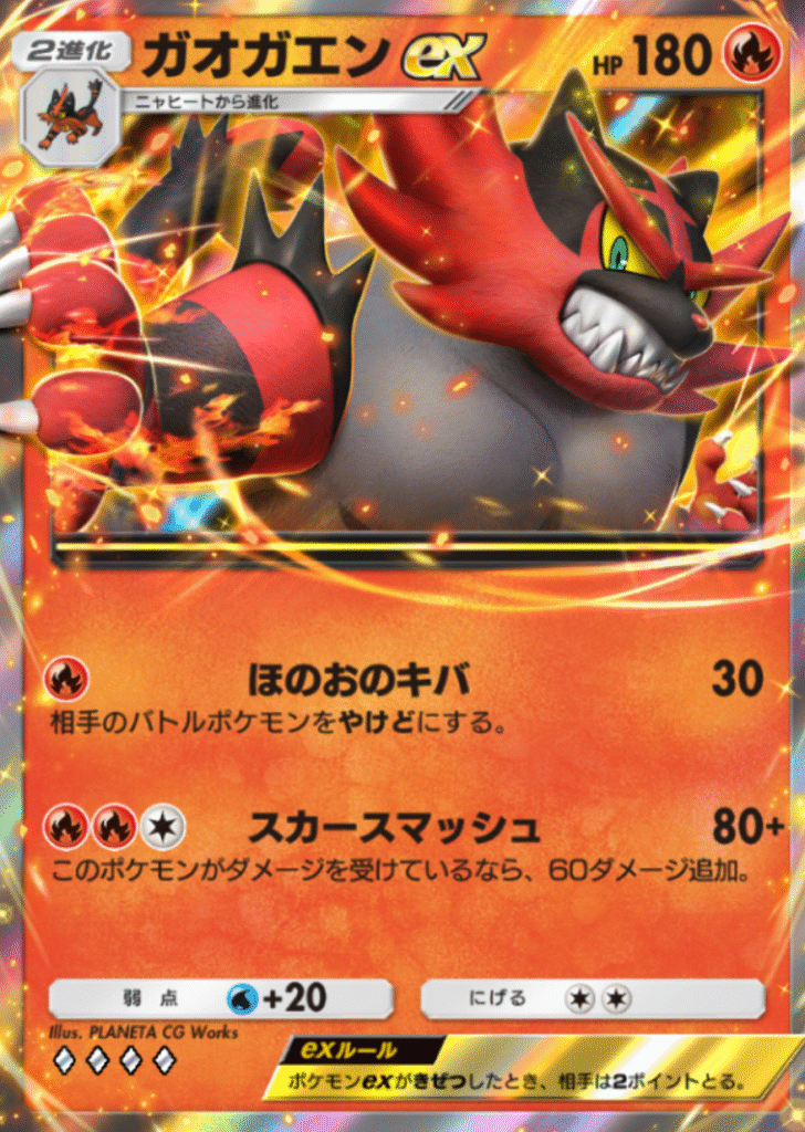 ガオガエンexに使えばエネルギー1個で80ダメージ、エネルギー3個で最大170ダメージ