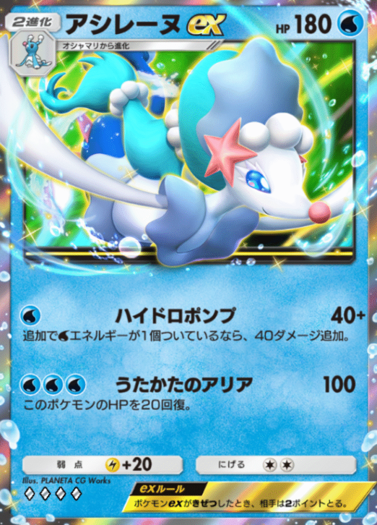 - バトル後半はアシレーヌexを中心に戦い、ワザによるHP回復効果で持久戦に持ち込む構成です。
