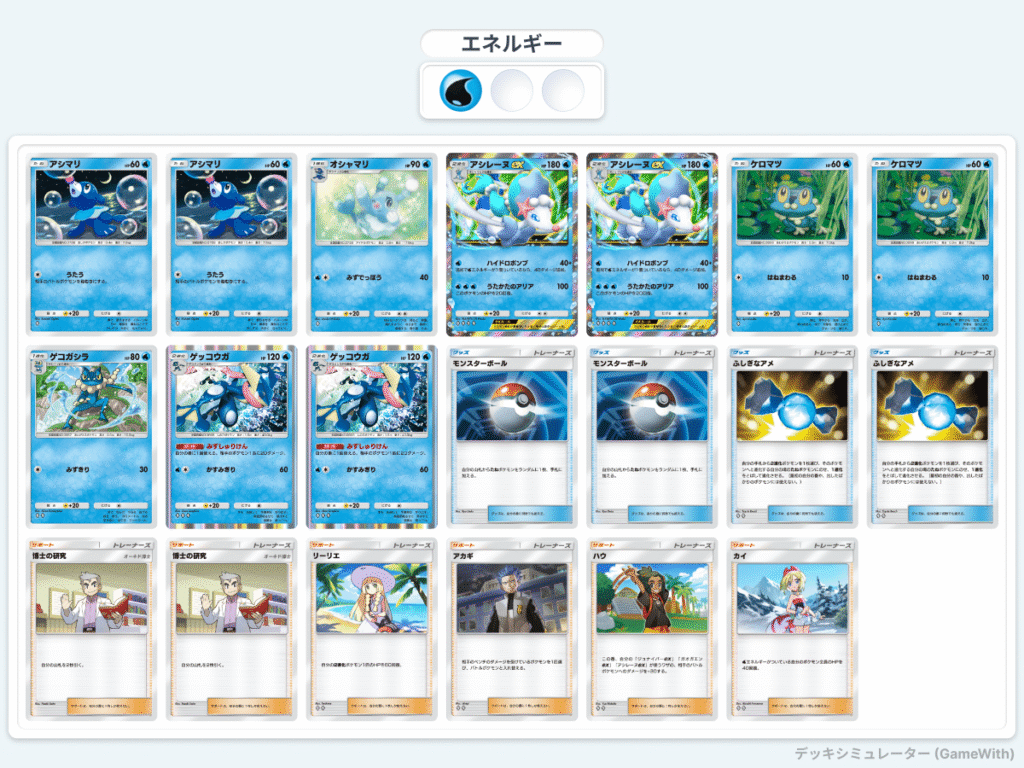 - アシレーヌexとゲッコウガを組み合わせたデッキ構成です。