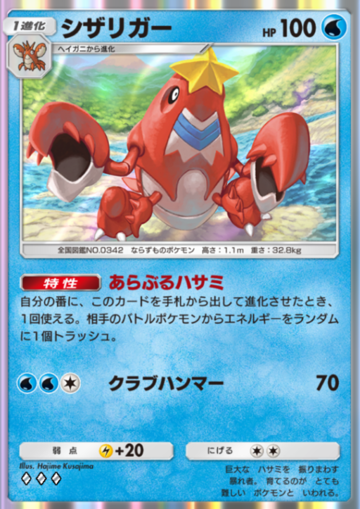 - アローラ キュウコンexのワザで相手にエネルギーをつけさせず、さらにシザリガーの特性でエネルギーをトラッシュすることで、相手ポケモンのワザを封じることができます。