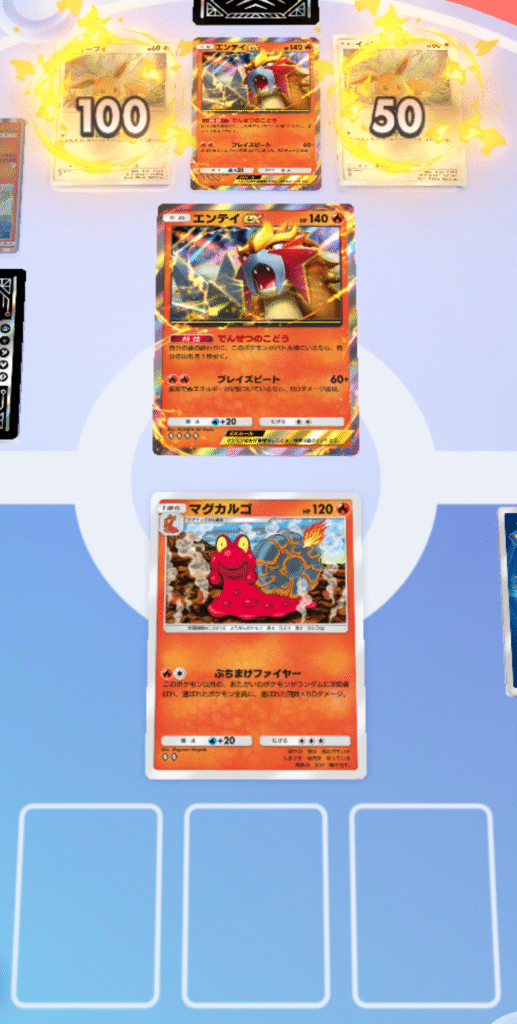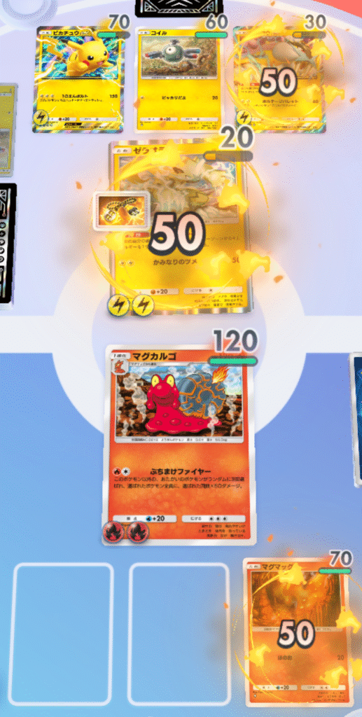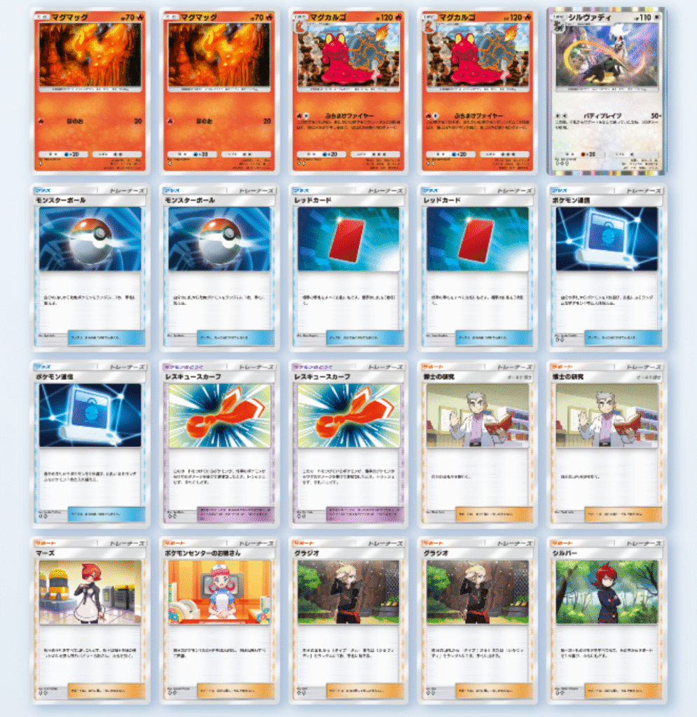 マグカルゴ単デッキを使って、全ての対戦相手に1-2回目の挑戦で勝利できました。ランダム要素が強いため、使っていて楽しいデッキです。