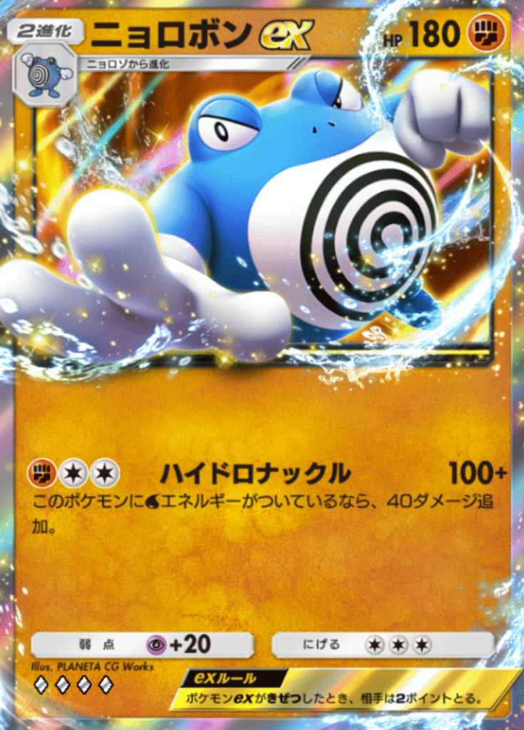 闘ポケモンを軸とした「ニョロボンex & ニョロトノ」デッキには弱点をつかれてしまうため、後述するフリーザーex単デッキを使用するのがおすすめです。