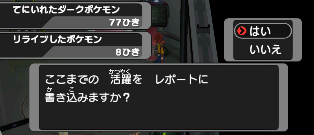 ダークポケモンのゲットに成功したら、バトルが終わった後も忘れずにセーブしてください。