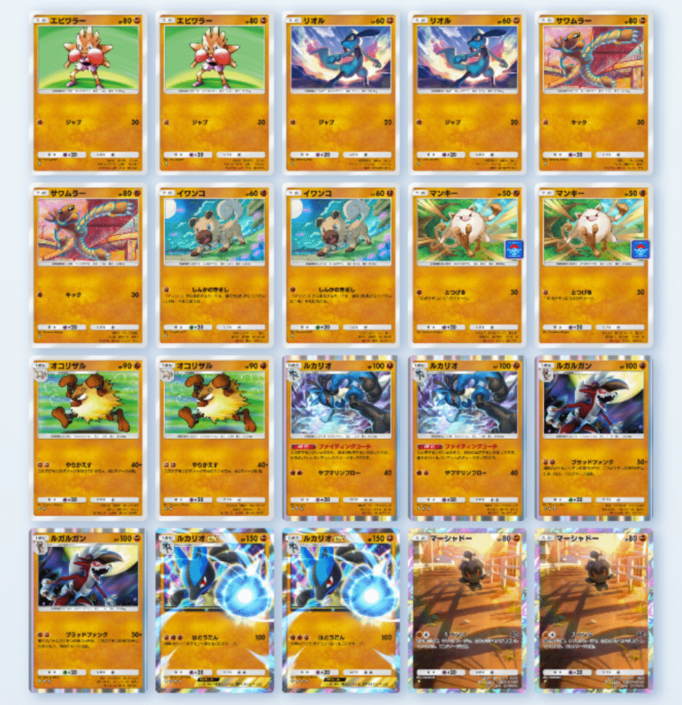 - 闘ポケモンのワザのダメージを強化できる特性を持つルカリオや、同じくリオルから進化するルカリオexも採用しています。