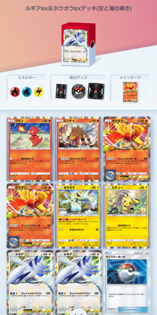 - ブビィやピチューのワザや、ゼラオラの特性 +「エレメンタルつけかえ」でホウオウexやルギアexのエネルギー加速を行うことも可能です。