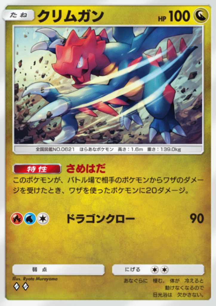 一方で、ワザに炎と水エネルギーを必要とするクリムガンはたねポケモンのため、ホウオウexでエネルギー加速可能です。