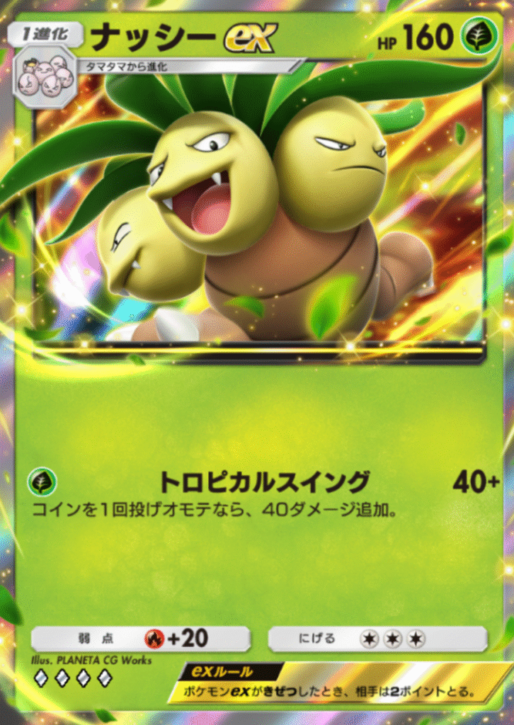 さらに同じデッキに入れられるナッシーexもコイン表でダメージを増加できるため、状況に応じてイツキを活用できます。