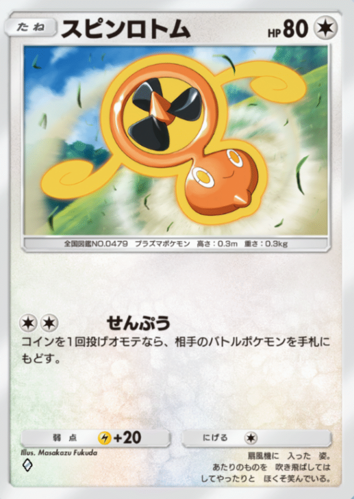 イツキは、相手バトルポケモンを手札に戻す効果を持つスピンロトムとも好相性です。