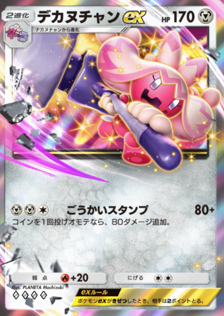 デカヌチャンexは80ダメージを与え、さらにコイン表なら80ダメージ追加で合計160ダメージを与えられます。