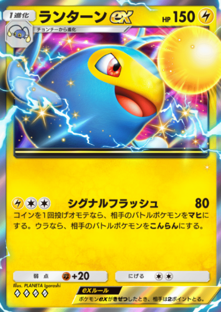 ランターンexはコインの結果次第で相手をマヒまたはこんらんにする強力な効果を持ちます。