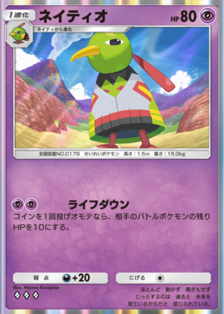 ネイティオは「空と海の導き」パックで追加されたカードで、コインが表なら相手のHPを10にするという強力なワザを持っています。