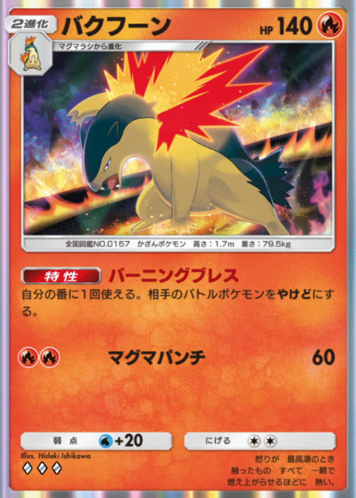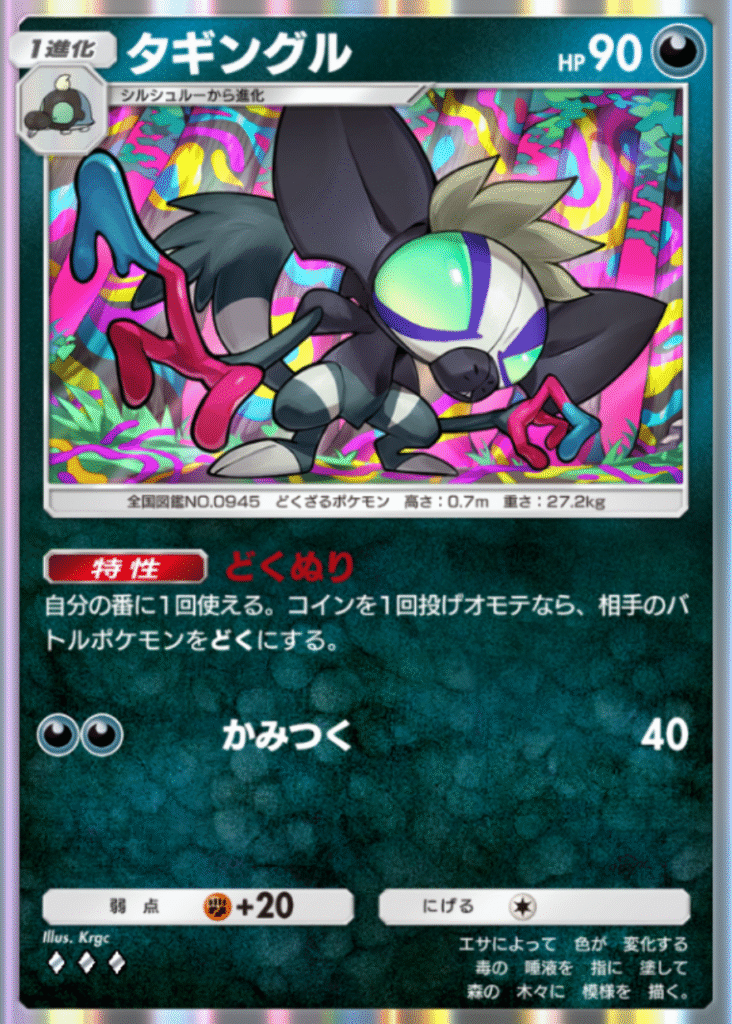 ただし、ネイティオ単体では相手を倒しきれないため、どく状態にするどくばりやタキンギル、やけどにできるバクフーン、ベンチにもダメージを与えられるゲッコウガなどと組み合わせると効果的です。
