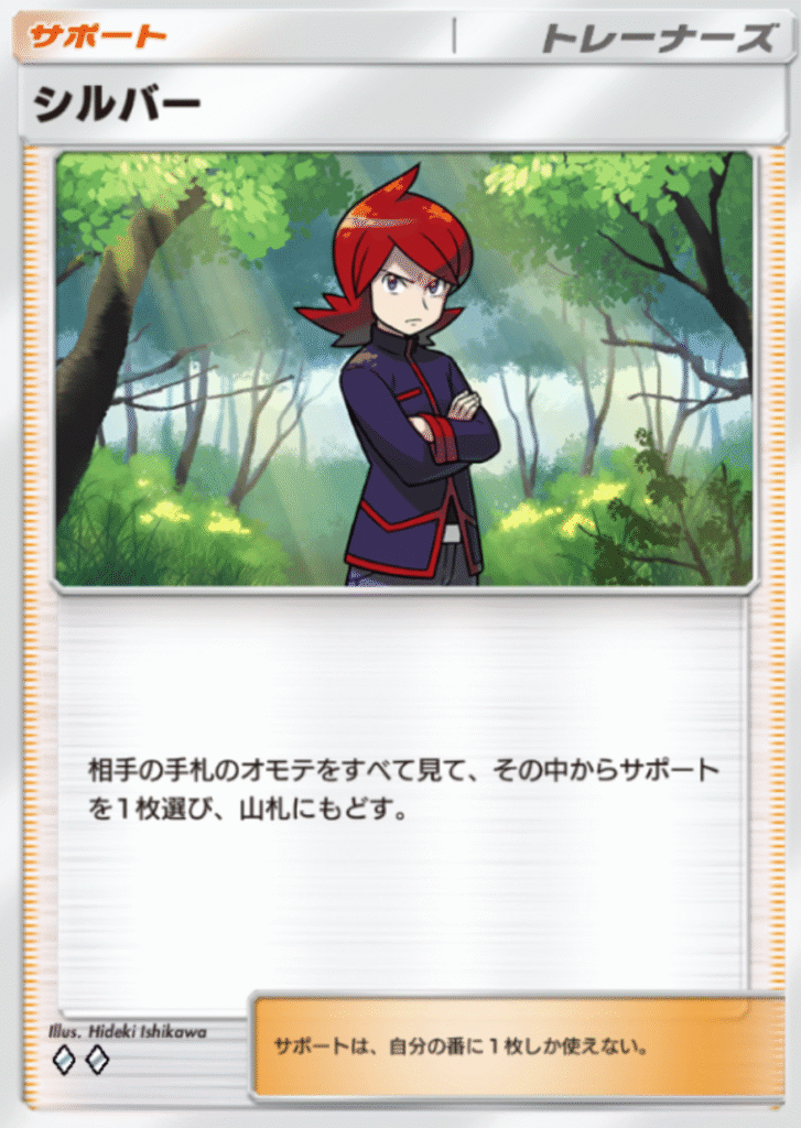 シルバーは「相手の手札を確認できる」だけでなく、「サポートカードを山札に戻す」という強力な干渉効果を持つカードです。